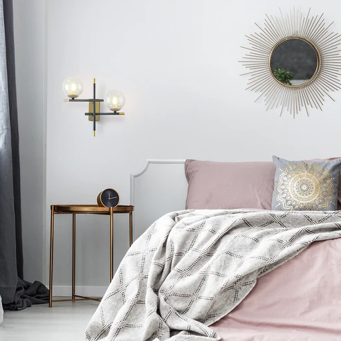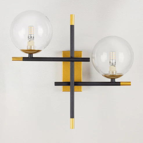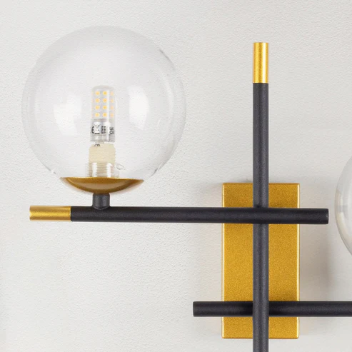 Zwarte Wandlamp Met Gouden Details, 2-Lamps – Niya